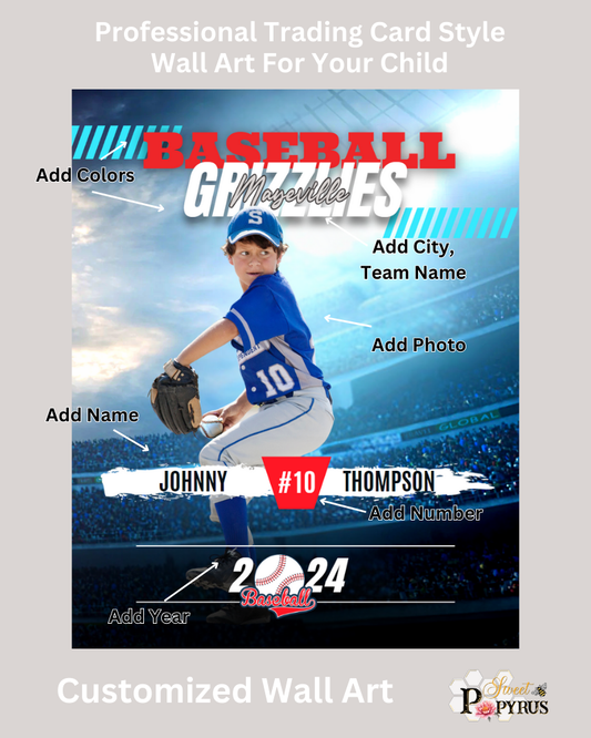 Baseball Trading Card Style 1 - Customized Wall Art Print