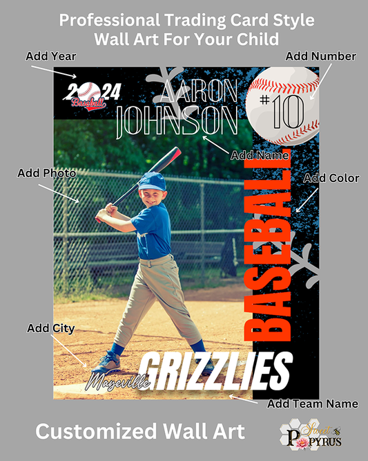 Baseball Trading Card Style 6 - Customized Wall Art Print