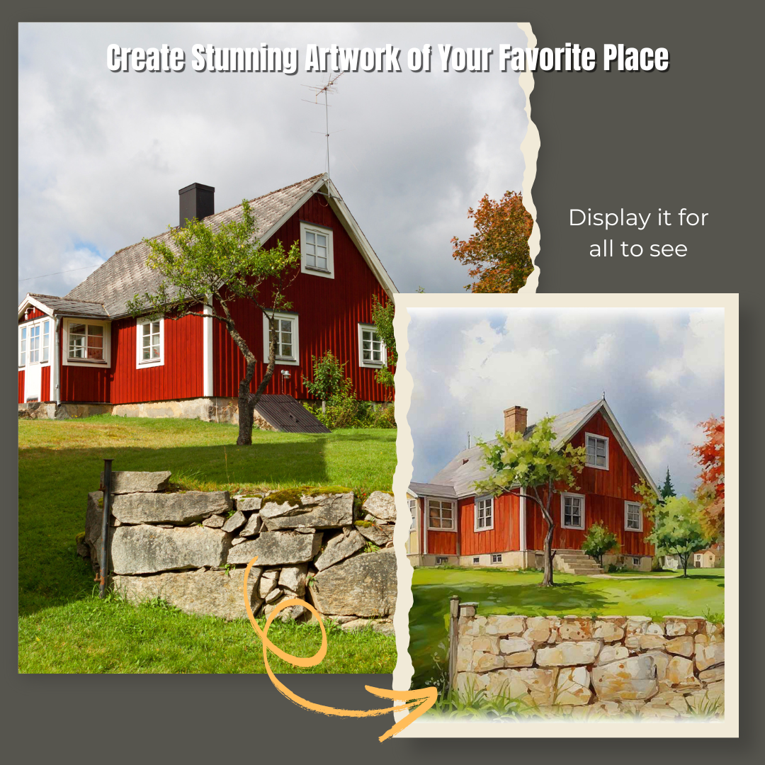 💡 Imagine your home, beautifully transformed into a classic watercolor painting or a bold impasto masterpiece. Whether it’s your cozy family cottage or sleek modern residence, this is more than just a photo—it’s a work of art that captures the charm and character of your home. 🏞️✨