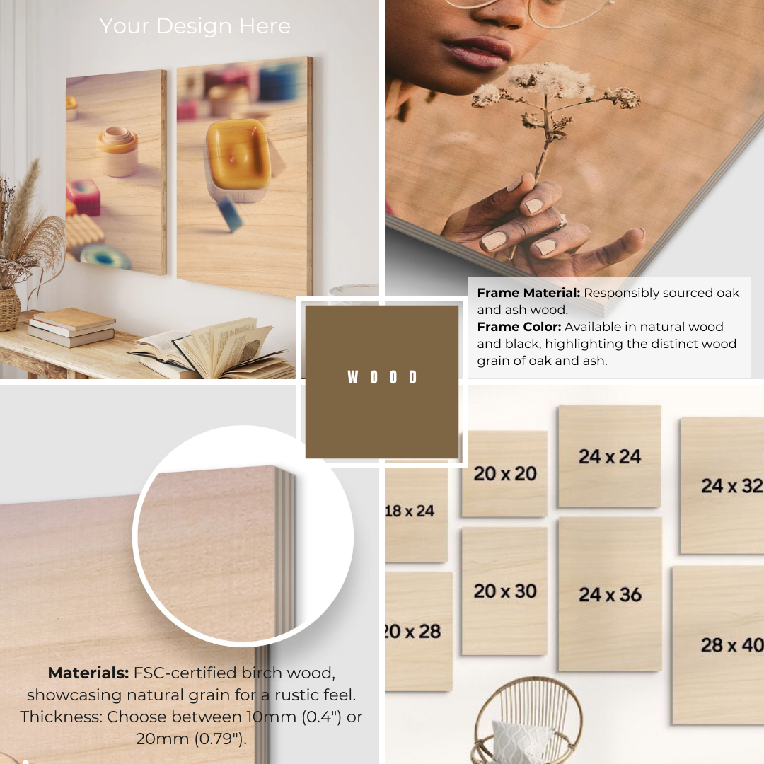 Choose the material that suits your style – Poster prints for simple beauty, canvas prints for classic elegance, wood prints for rustic charm, aluminum prints for modern flair, or acrylic prints for contemporary chic.