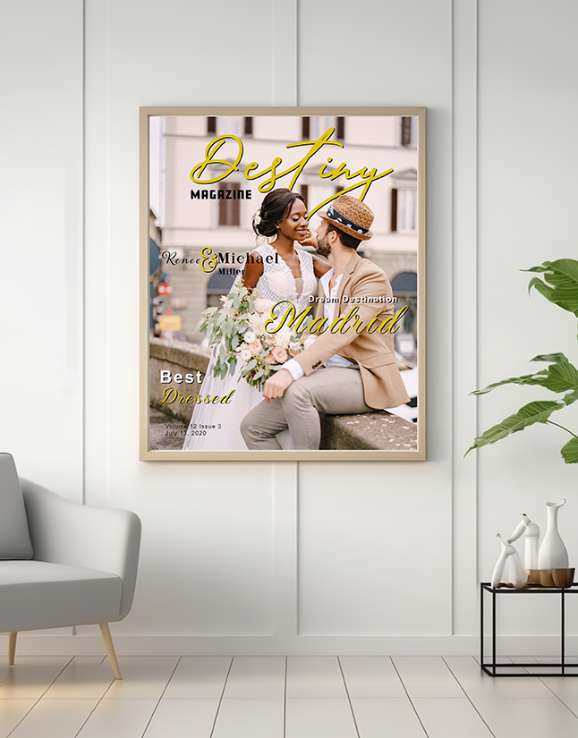 Capture the essence of your experience of wanderlust and eternal love on that special day with our stunning canvas prints, featuring the cover of 'Destiny' magazine. This exquisite artwork showcases that magical moment on your exotic honeymoon getaway.