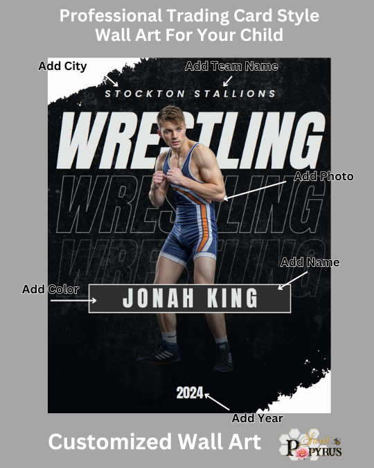 šÆĀ Is your wrestler dominating the mat and making you proud? Capture every pin, takedown, and victory with a custom wrestling trading card-style wall art that immortalizes their hard work and grit! š¤¼āāļøš„